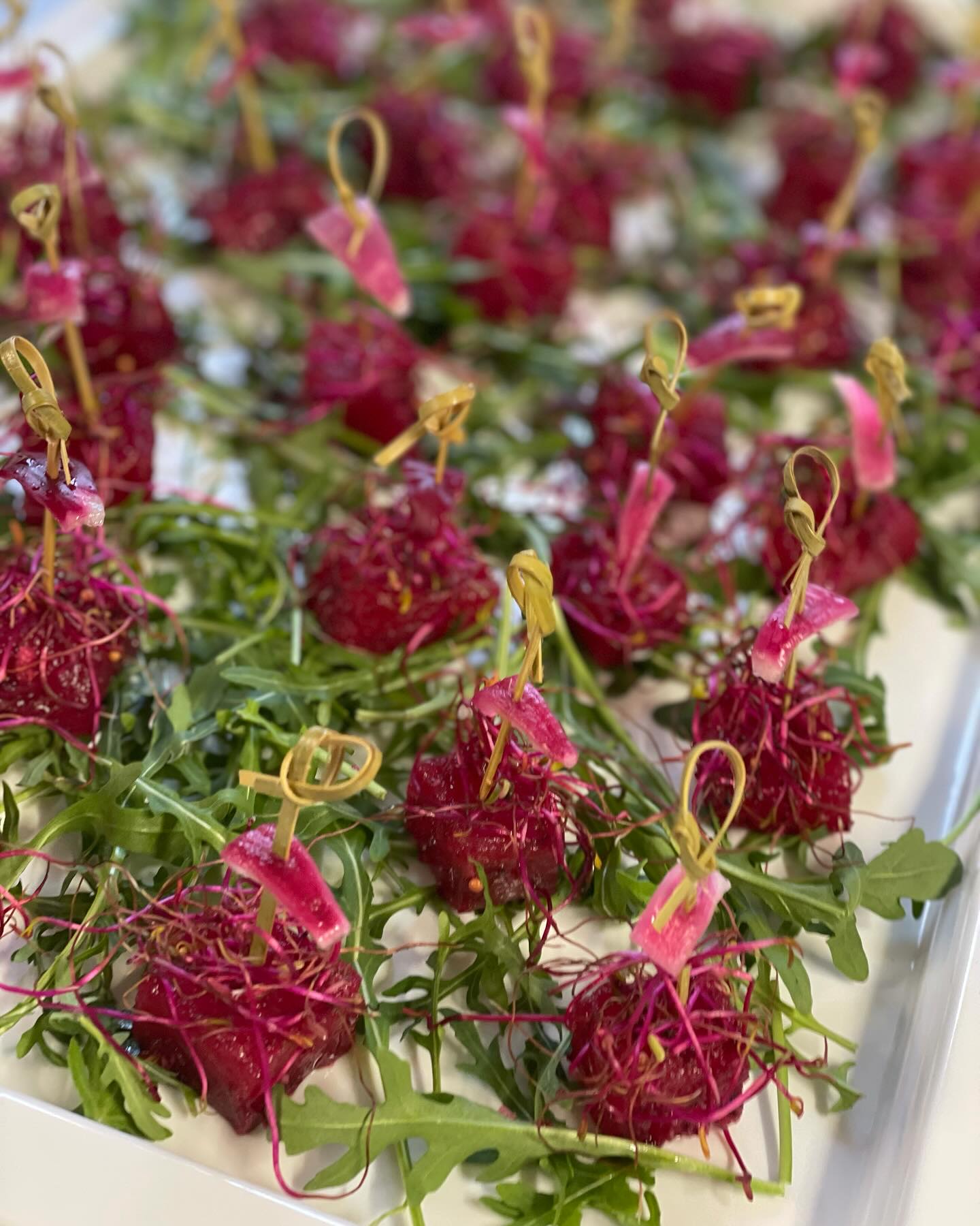 MINIATURE TÆRTER M. HYTTEOST, PEBER & PERSILLE – TOPPET M. TOMAT & BRESOLA - 30,-